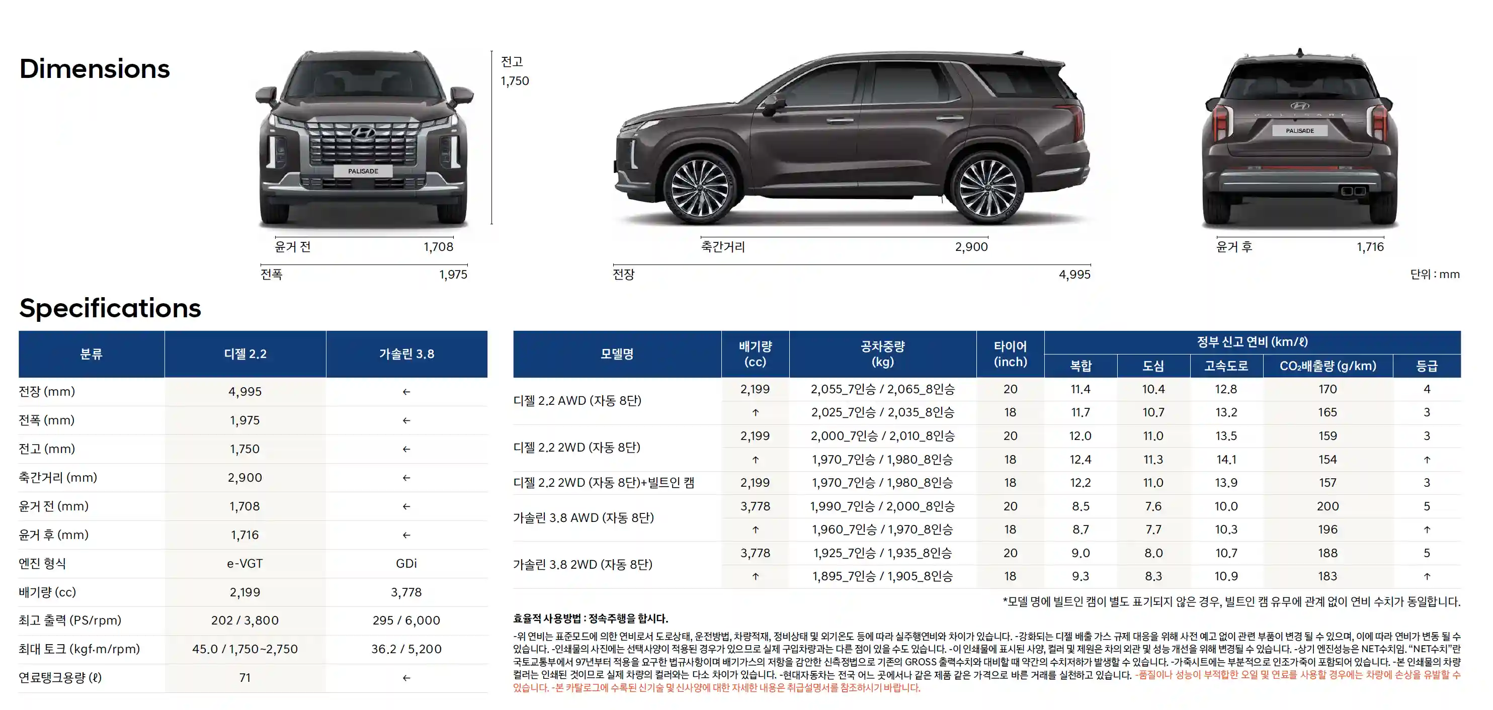 더 뉴 팰리세이드 제원과 연비에 대해서 알아보겠습니다.