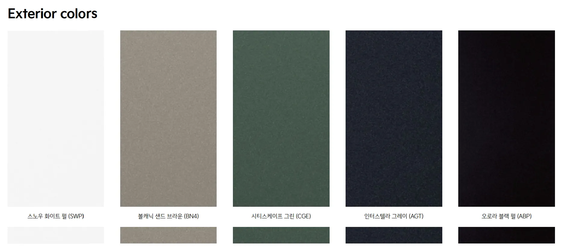 외장 컬러는 5가지이며, 내장 컬러는 2가지로 선택할 수 있습니다.