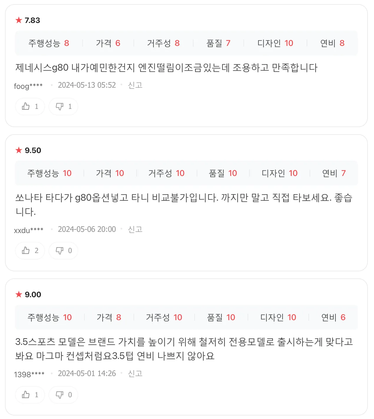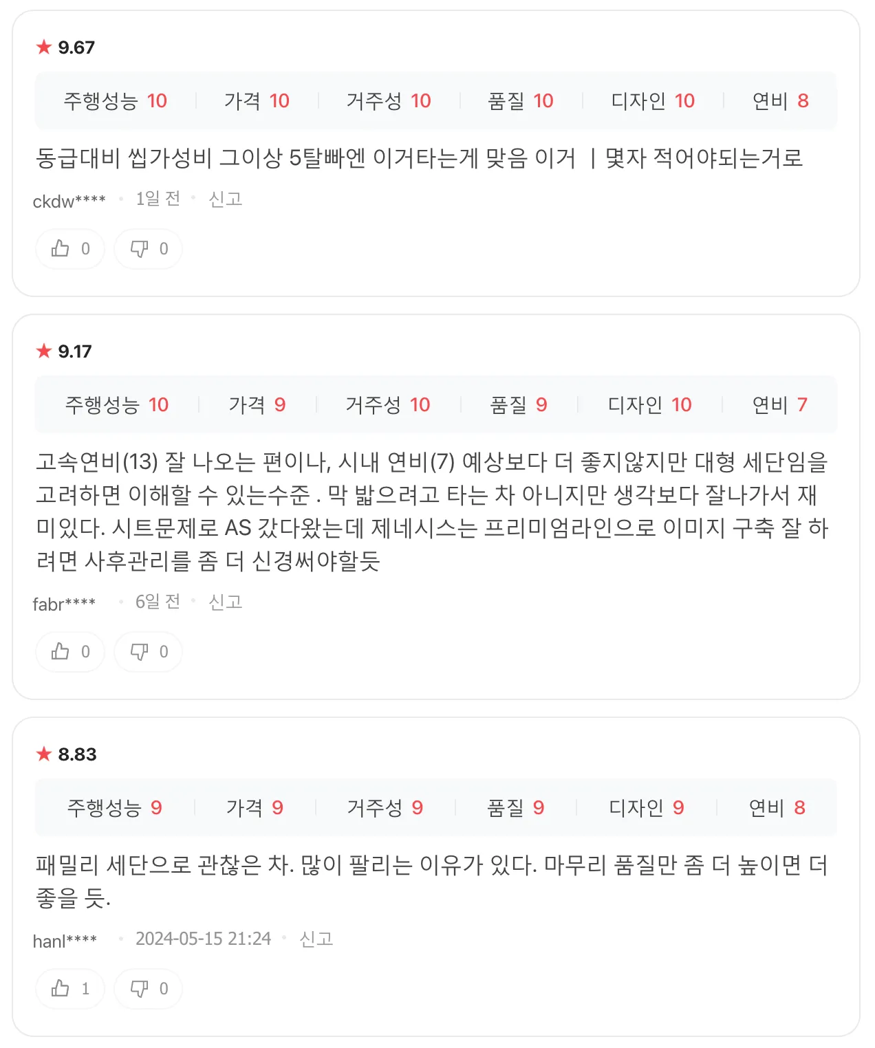 2024 제네시스 G80 장단점에 대해서 아래와 같이 요약해볼 수 있습니다. 그리고 차량 오너들의 평가도 참고하여 차량 구매 결정에 도움 되시기 바랍니다.