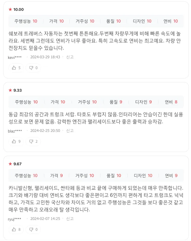 쉐보레 트래버스 경쟁 차량 List