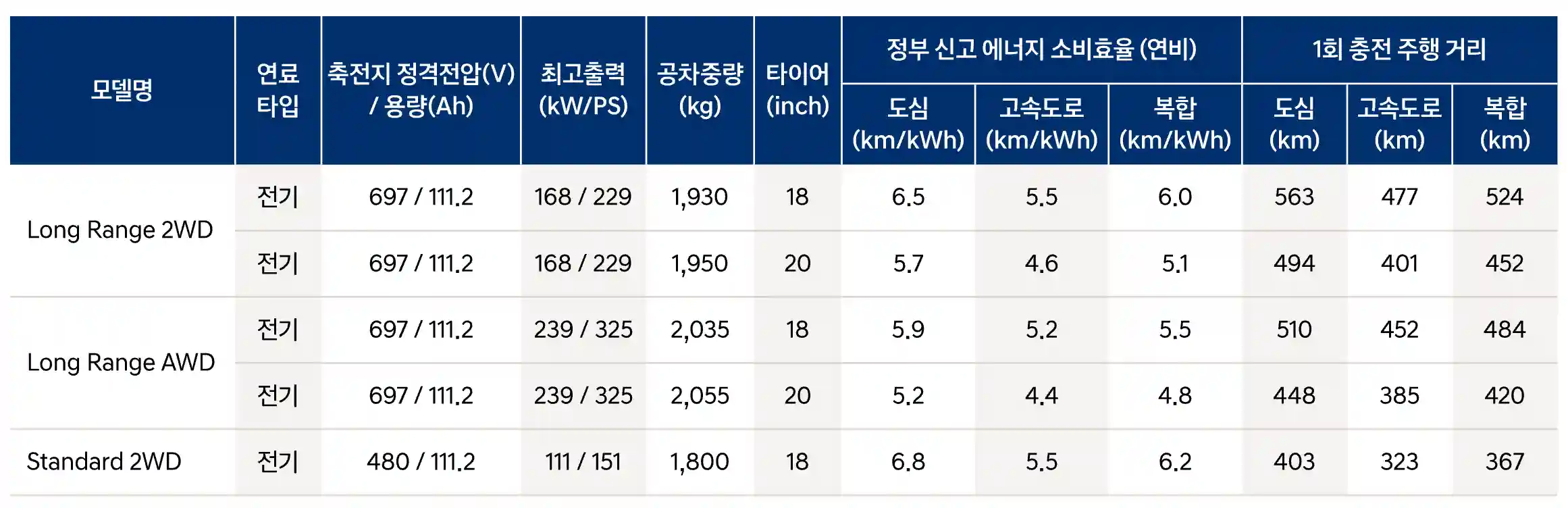 3. 제원과 연비