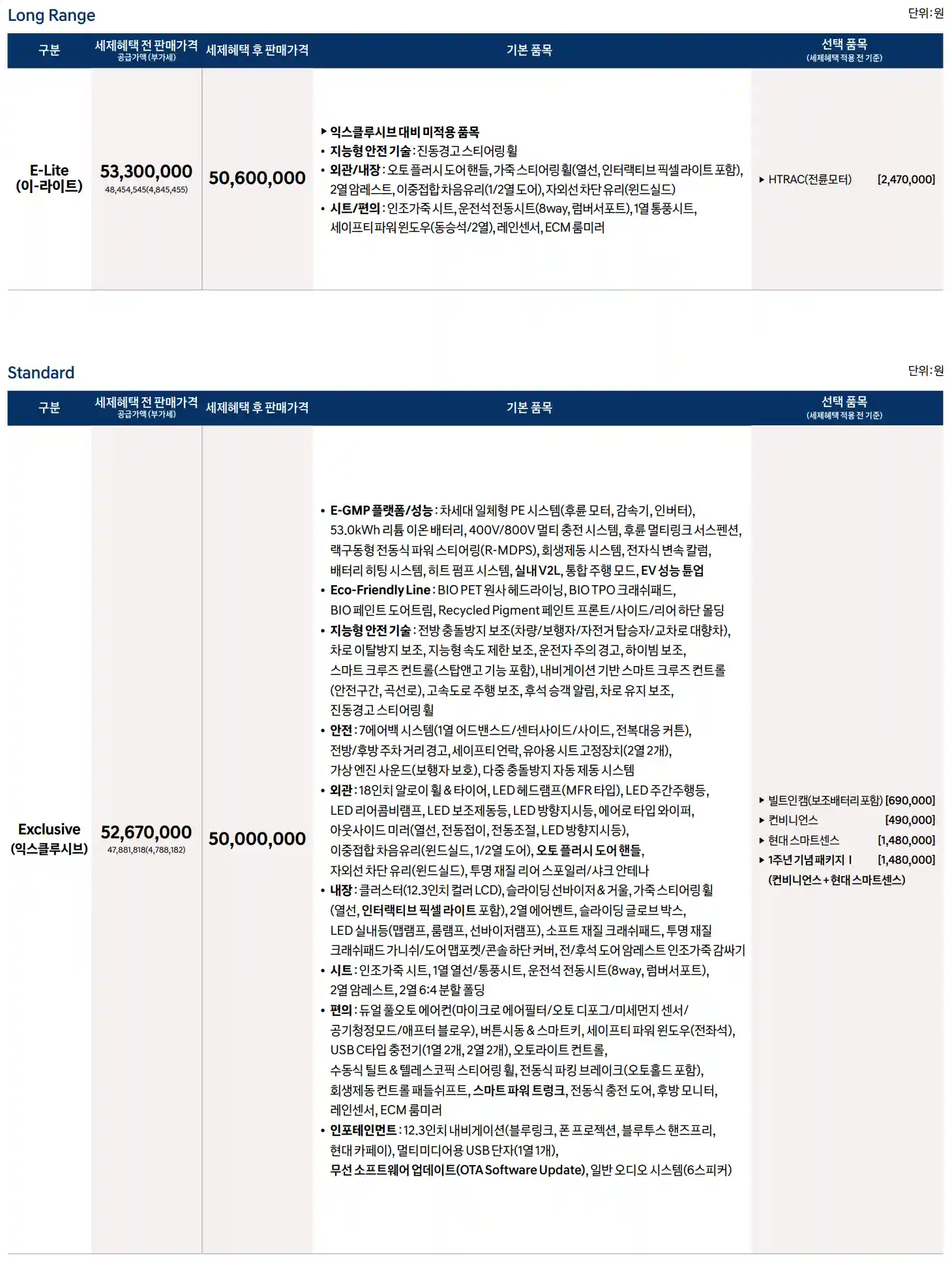 2024 아이오닉 6 모델의 가격은 다음과 같습니다.
