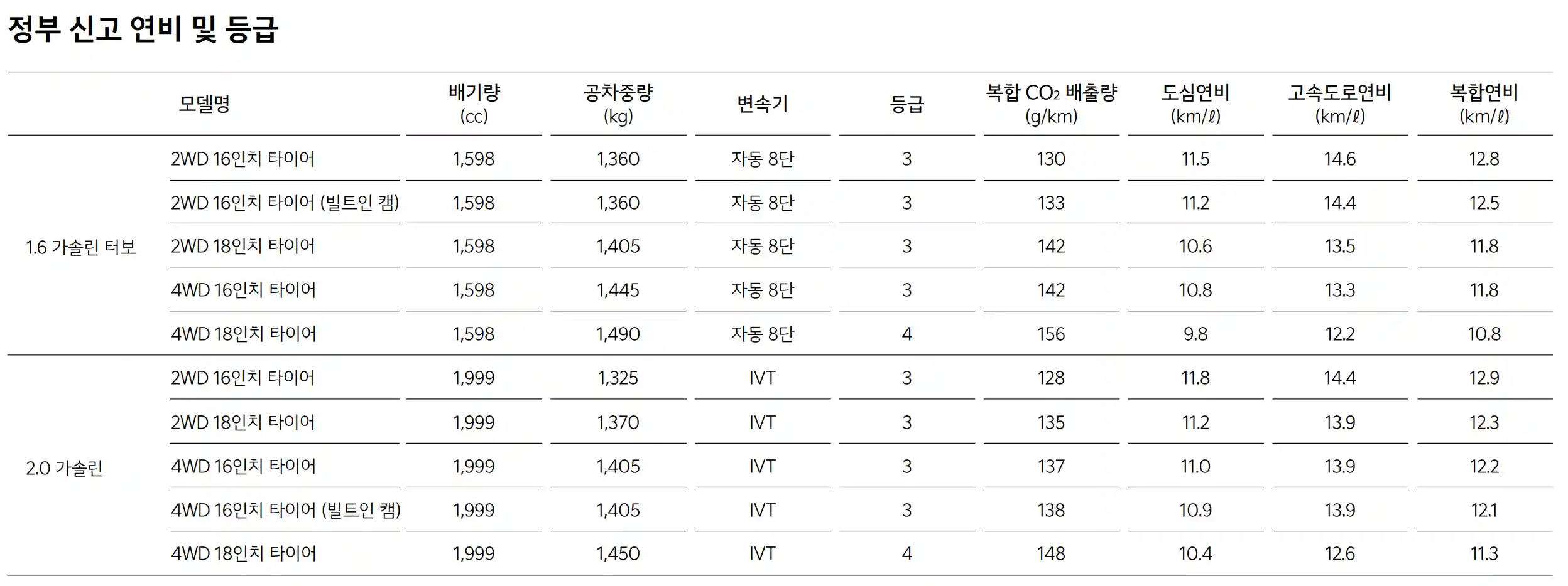 3. 제원과 연비