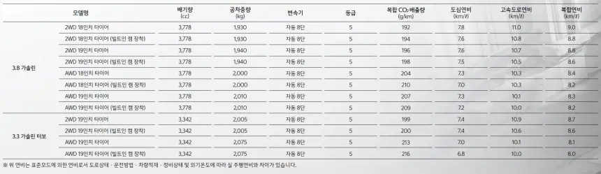 3. 제원과 연비