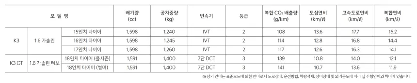 3. 제원과 연비