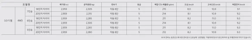 3. 제원과 연비
