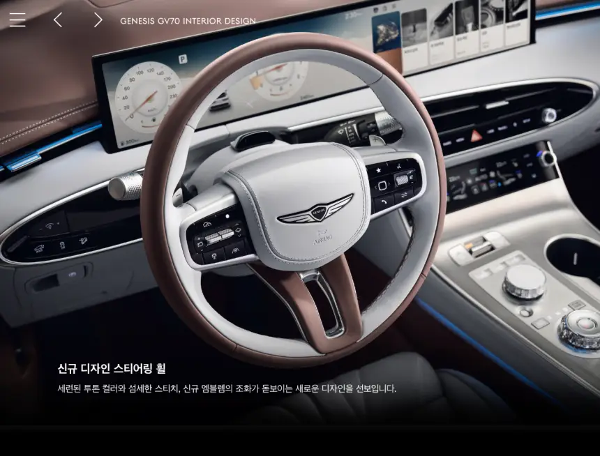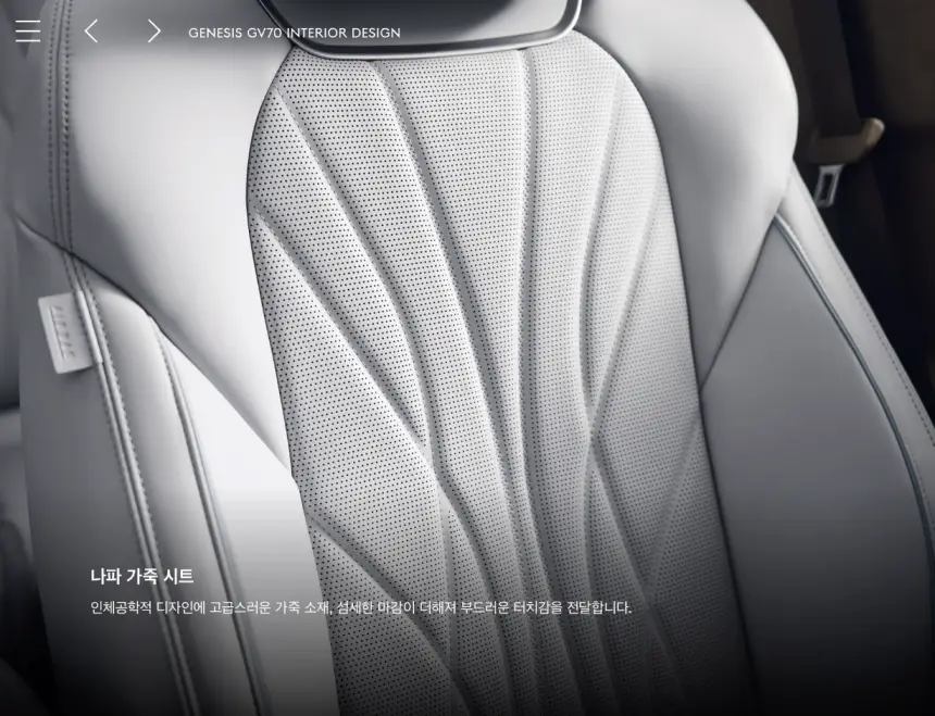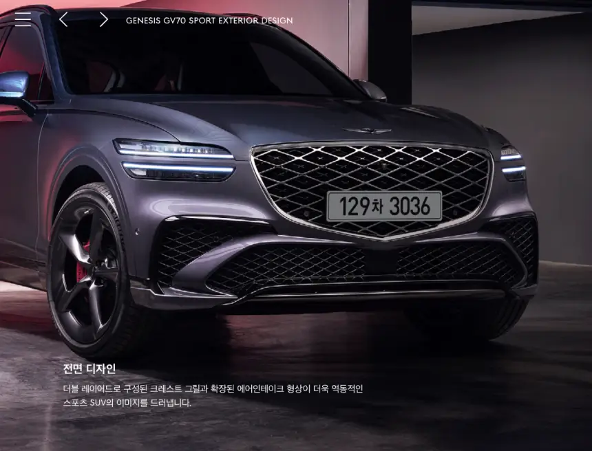 2024 제네시스 GV70은 중형 럭셔리 SUV로, 제네시스의 고유한 '여백의 미'를 살린 외관과 고급스러운 실내를 갖추고 있으며, 주행 성능과 안전성에서도 높은 평가를 받고 있습니다. 최근 출시된 모델은 차량의 안전성을 높이기 위해 내구성과 운전 시스템이 업그레이드 되었다고 합니다. GV70은 주행 성능, 정숙성, 고급스러운 디자인으로 긍정적인 평가를 받고 있어 매력있는 중형 럭셔리 SUV 자동차입니다.