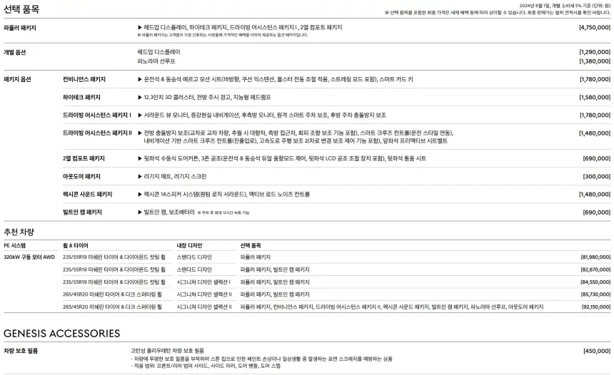 2024 GV70 전기차 모델의 가격은 다음과 같습니다.