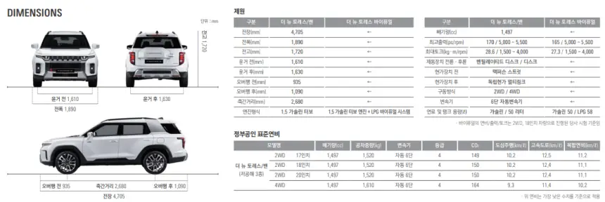 2024년 뉴 토레스 가격, 출고기간, 제원, 장단점 총정리