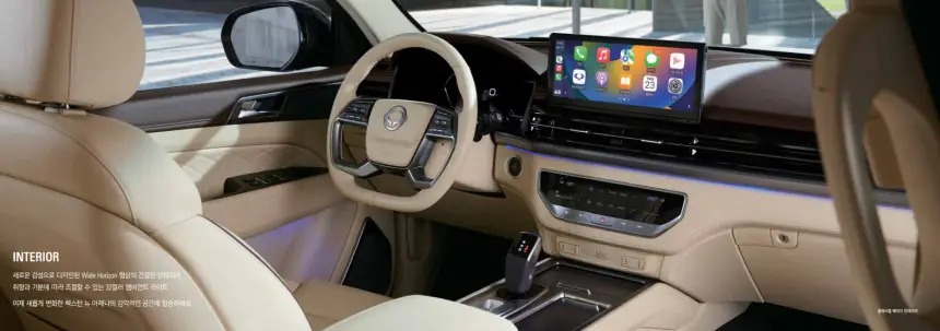 2024 렉스턴 뉴 아레나는 KG 모빌리티에서 출시한 준대형 SUV로, 기존 렉스턴 모델의 부분변경 모델입니다. 외관은 기존 모델과 큰 차이가 없으나, 실내는 많은 변화가 있었습니다. 12.3인치 풀 디지털 계기판과 중앙 디스플레이, 다양한 실내 색상 옵션 등이 새롭게 적용되었습니다.