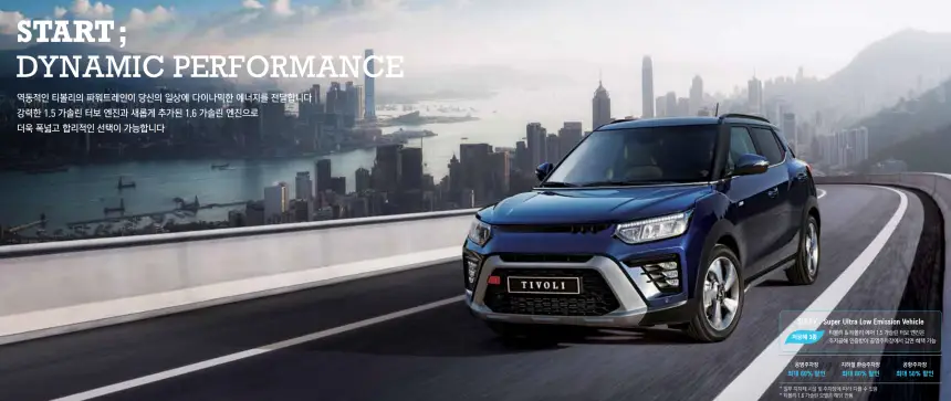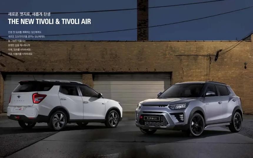 2024 더 뉴 티볼리는 KG모빌리티의 대표 소형 SUV입니다. 1.5리터 가솔린 터보 엔진과 1.6리터 가솔린 엔젠 두 가지 모델로 제공되며, 각각 최대 출력 163마력과 126마력을 발휘합니다. 이전 모델에 비해 내외장 디자인이 모두 개선되었고, 특히 플로팅 타입의 디스플레이와 업그레이드된 음성 인식 기능도 변화가 되었습니다.