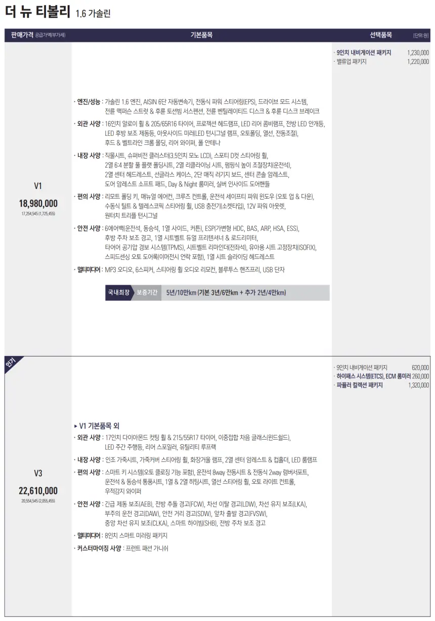 2024 더 뉴 티볼리 1.6 가솔린 가격표