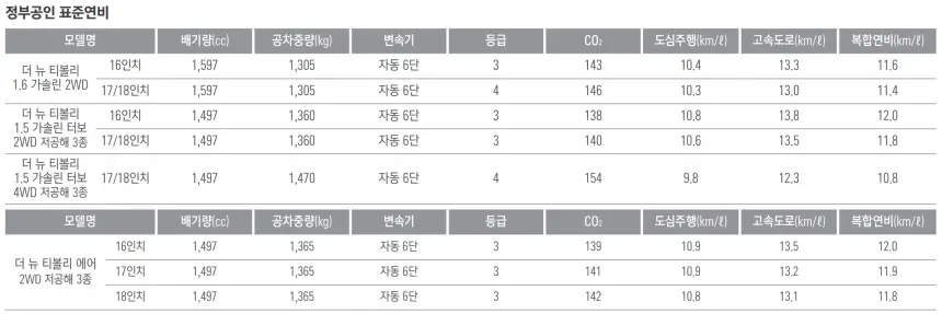 2024 더 뉴 티볼리 제원과 연비에 대해서 알아보겠습니다.
