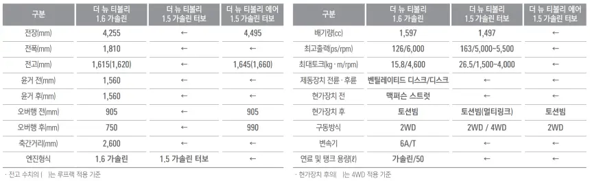 2024년 더 뉴 티볼리 가격, 출고기간, 제원, 장단점 총정리