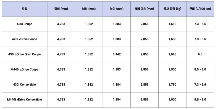 2024 BMW 4시리즈 제원과 연비에 대해서 알아보겠습니다.