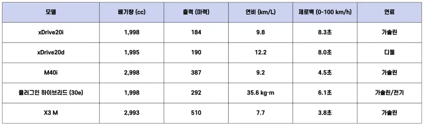 2024 BMW X3 제원과 연비에 대해서 알아보겠습니다.