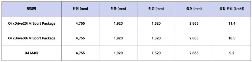 2024 BMW X4 제원과 연비에 대해서 알아보겠습니다.