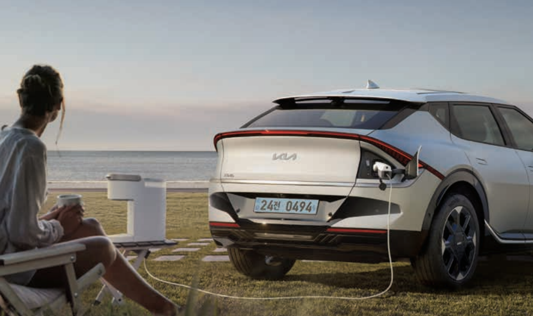 - EV6는 외부 전자기기를 충전하거나 전력을 공급할 수 있는 V2L 기능을 갖추고 있습니다.