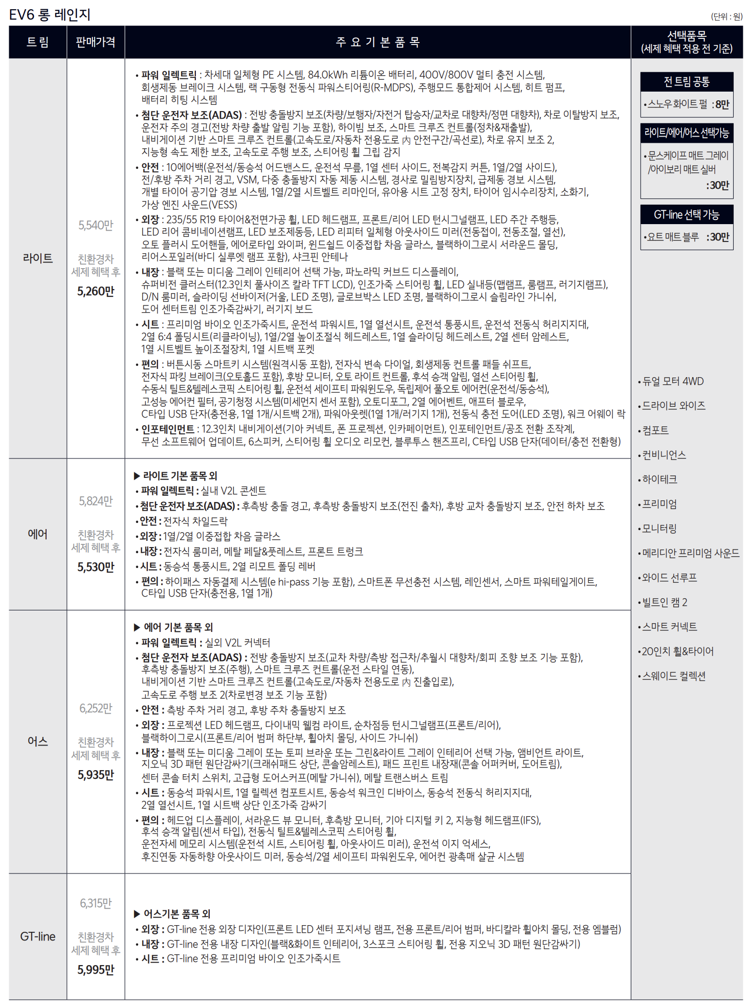 1. 2025 기아 EV6 가격표