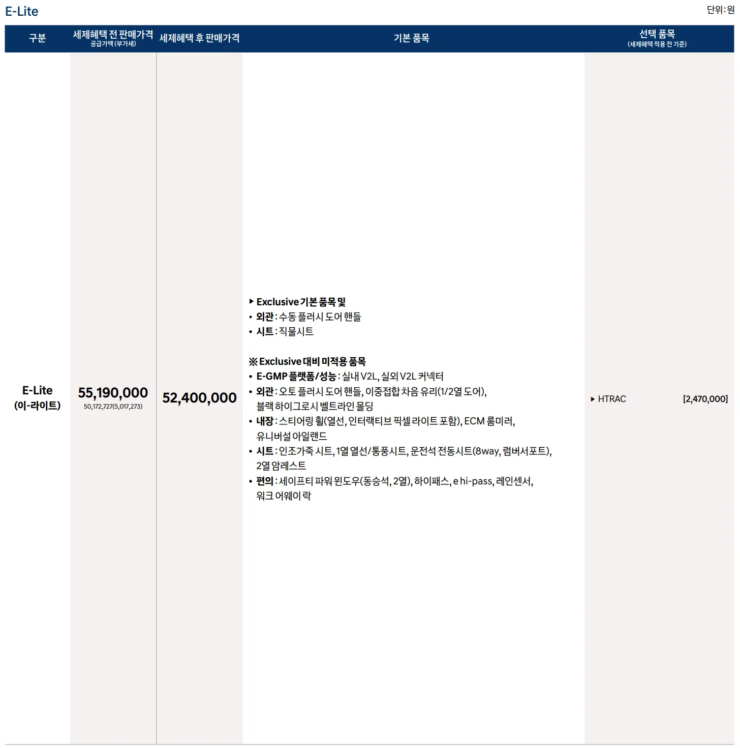 뉴 아이오닉5 모델의 가격은 다음과 같습니다.